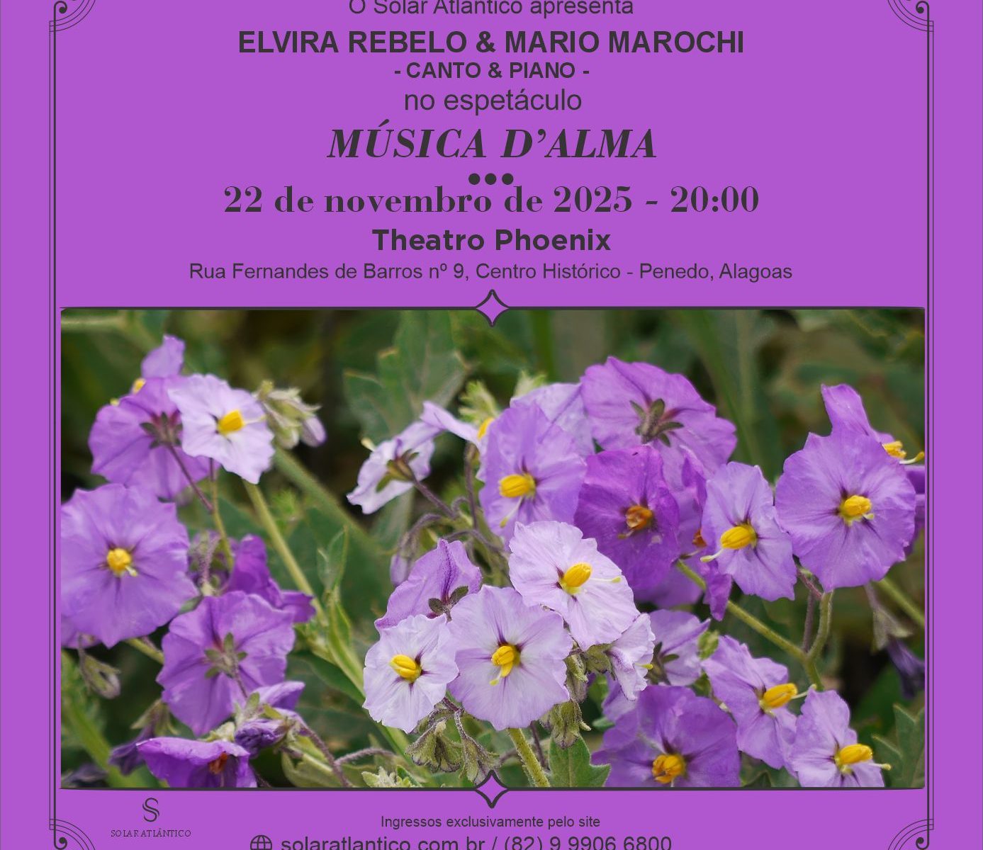 Em Novembro teremos o espetáculo “MÚSICA D’ALMA“, com a cantora lírica Elvira Rebelo e o pianista Mario Marochi.